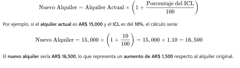 Por ejemplo, si el alquiler actual es AR$ 15,000 y el ICL es del 10%, el cálculo sería: